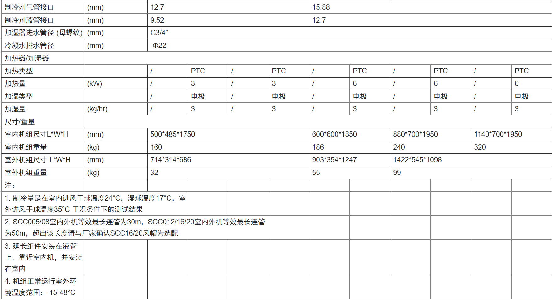 制冷量范圍涵蓋 5.6kW / 7.5kW / 12.5kW / 16.2kW / 20kW 五個量段。