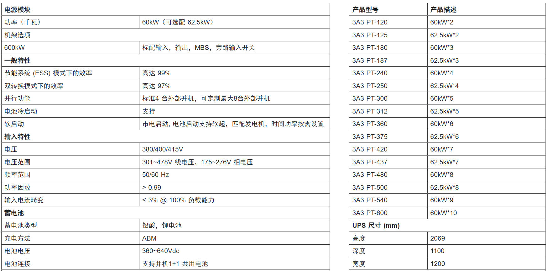 ARRAY 3A3 PT 系列(60kVA~600kVA) 集出色的效率和可靠性及美觀的設計于一身。這是一款節省空間、易于擴展且通風靈活的設備,部署與管理同樣簡單方便,是當今數據中心的**三相白色或灰色空間解決方案。